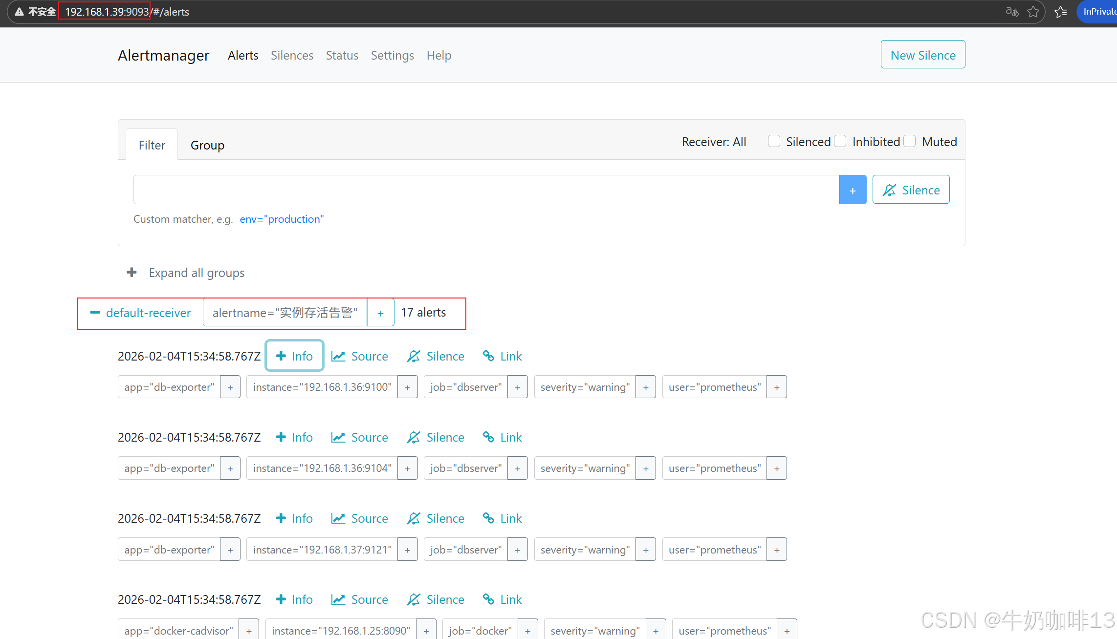 #5-通过【ip:9093】端口即可访问到Alertmanager的web界面