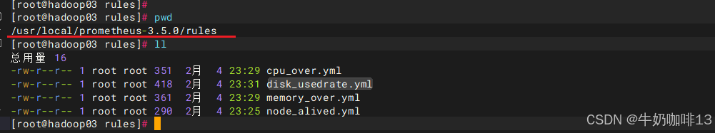 #告警规则的添加方法(为了更好清晰的结构则将每个告警信息都创建为单独的文件,都存放在【/usr/local/prometheus-3.5.0/rules】路径下):