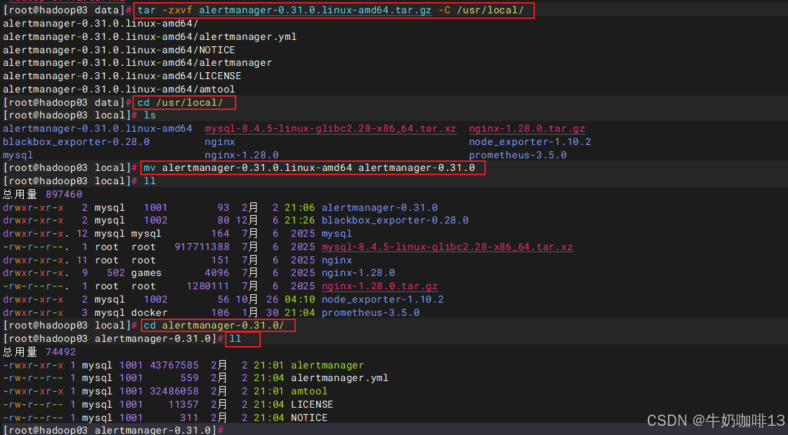 tar -zxvf alertmanager-0.31.0.linux-amd64.tar.gz -C /usr/local/