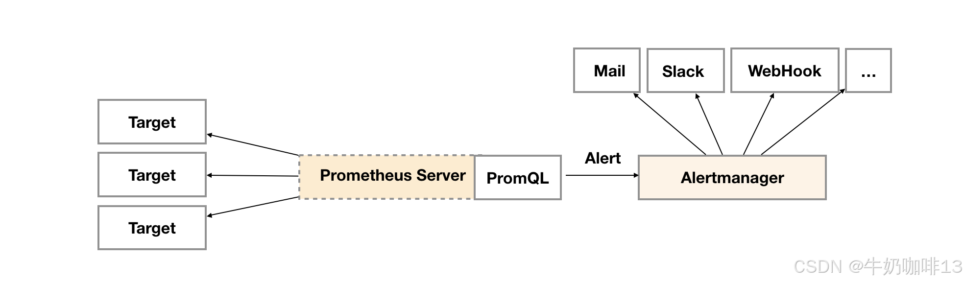 Alertmanager 主要用于接收 Prometheus 发送的告警信息,它支持丰富的告警通知渠道,而且很容易做到告警信息进行去重,降噪,分组等,是一款前卫的告警通知系统。