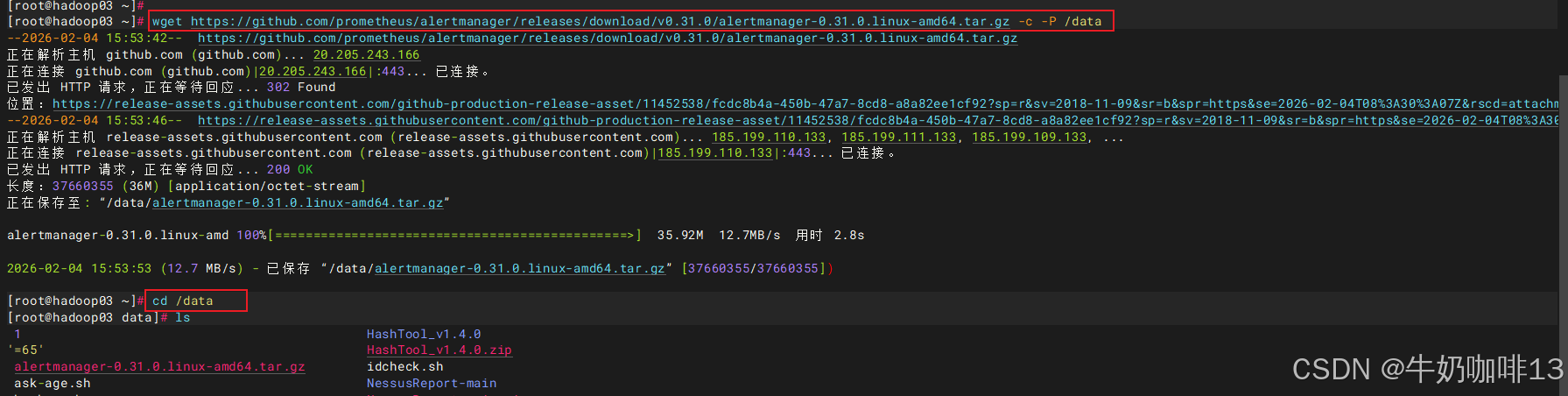 wget https://github.com/prometheus/alertmanager/releases/download/v0.31.0/alertmanager-0.31.0.linux-amd64.tar.gz -c -P /data