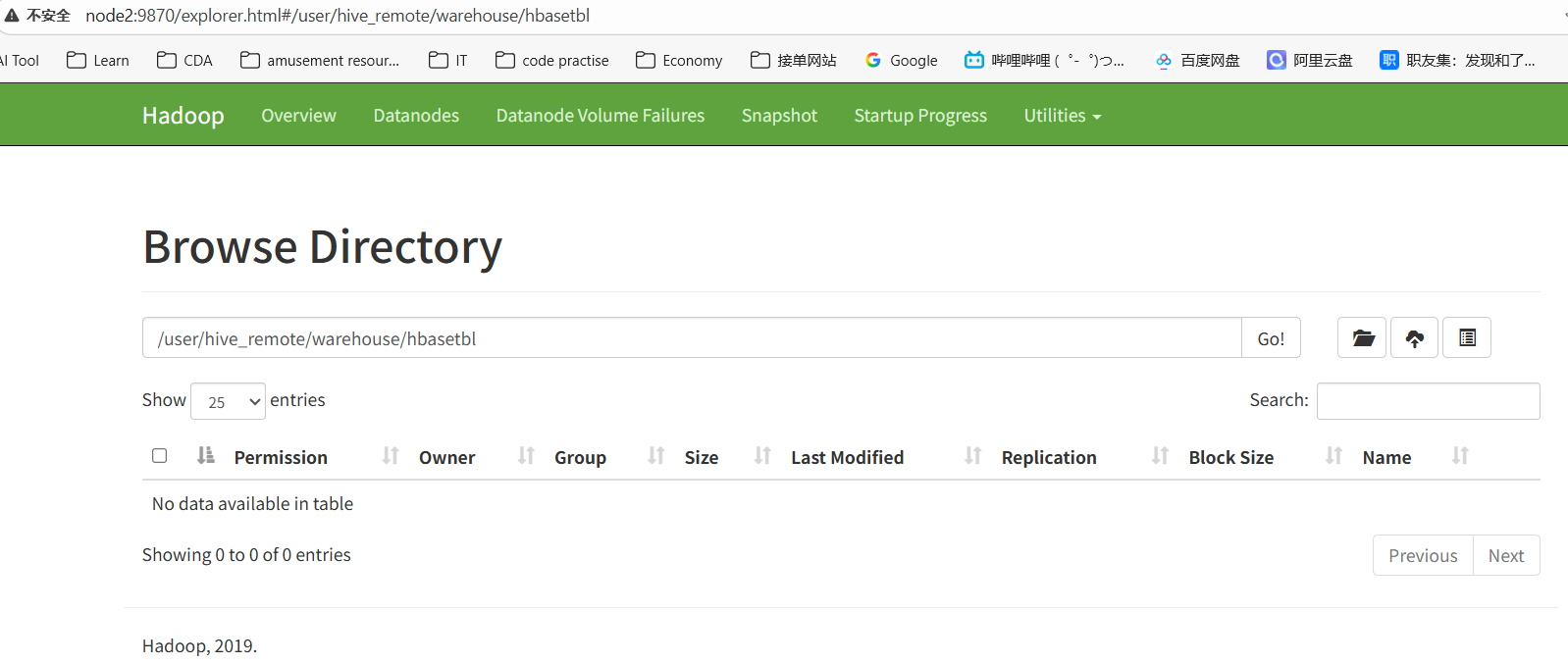 然后访问HDFS的WebUI界面查看hbase,发现有数据