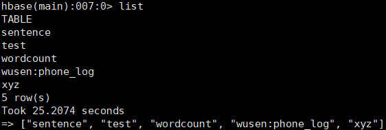插入后在hbase查看表数据变化,发现生成了对应数据
