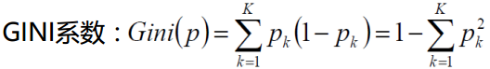 特征的基尼指数:$$Gini(D,A) = \frac{|D_1|}{|D|}Gini(D_1) + \frac{|D_2|}{|D|}Gini(D_2)$$