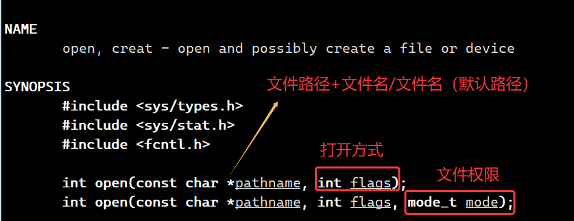 O_APPEND、O_CREAT、O_RDONLY(只读)、O_WRONLY(只写)、O_RDWR、O_TRUNC - flags是一个整数,一个整数有32个比特位,