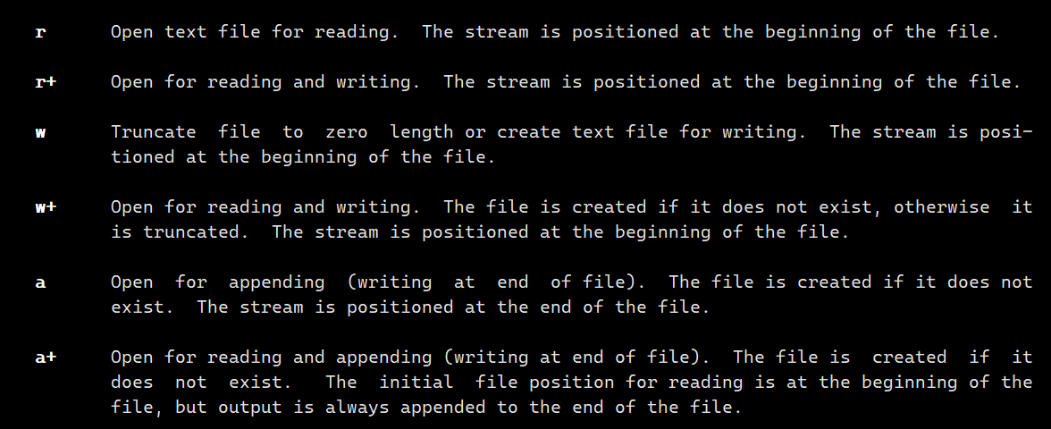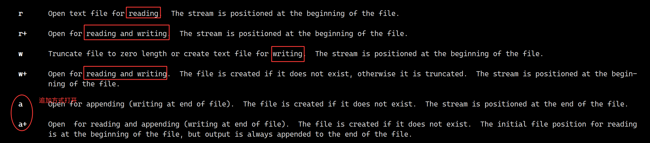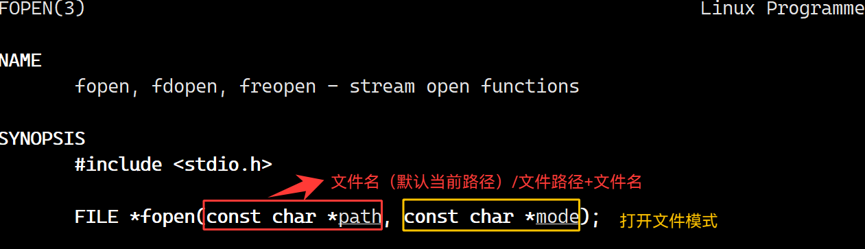 - fopen函数是C打开文件的接口,传入参数文件名、打开文件模式