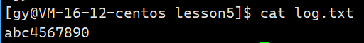 - 当log.txt文件中已经保存了1234567890数据时,我们再次向该文件写入"abc",可以看到,使用write系统调用,并没有像C语言接口一样,先清空文件中的数据,再写入;而是从文件开始写入