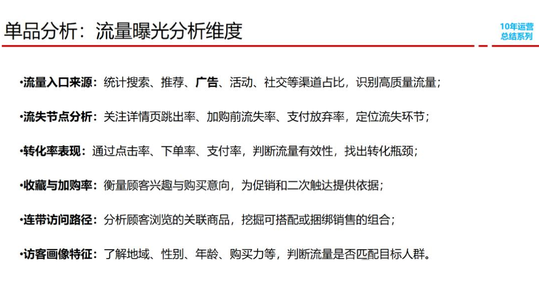 结合电商运营全链路,运营分析主要覆盖五大核心维度,每个维度对应关键业务场景,缺一不可: