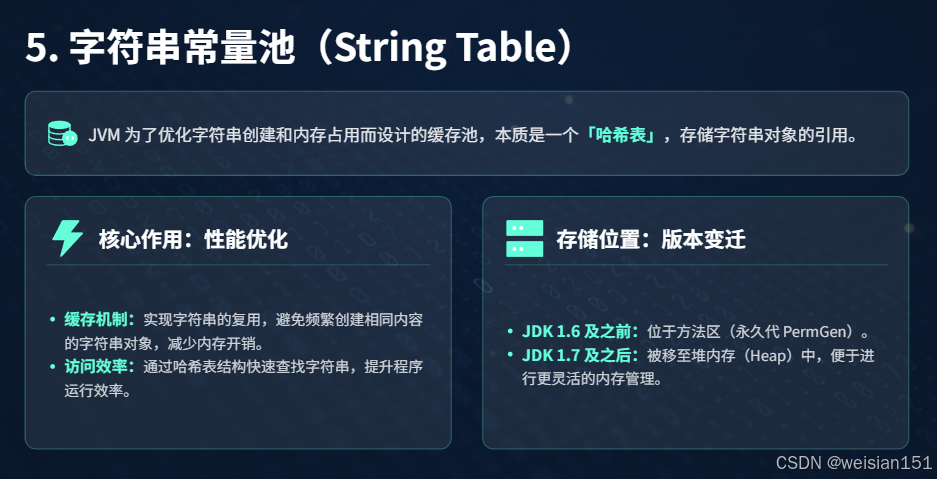 - 解耦字符串常量池:JDK 7 已将字符串常量池移至堆,JDK 8 彻底分离元数据。