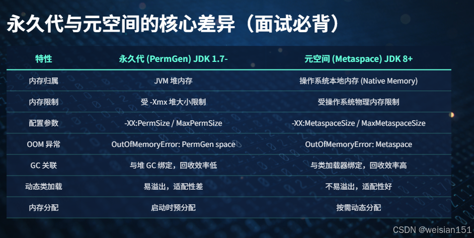 3. 永久代与元空间的核心差异(面试必背)