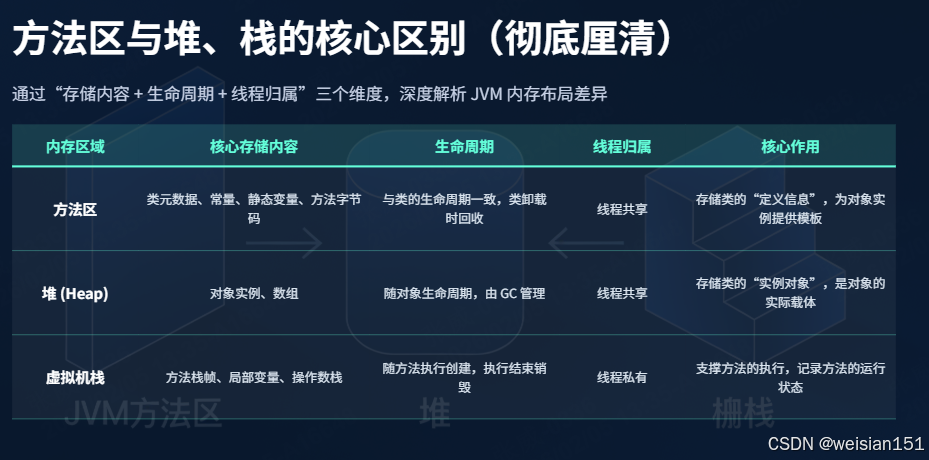 2. 方法区与堆、栈的核心区别