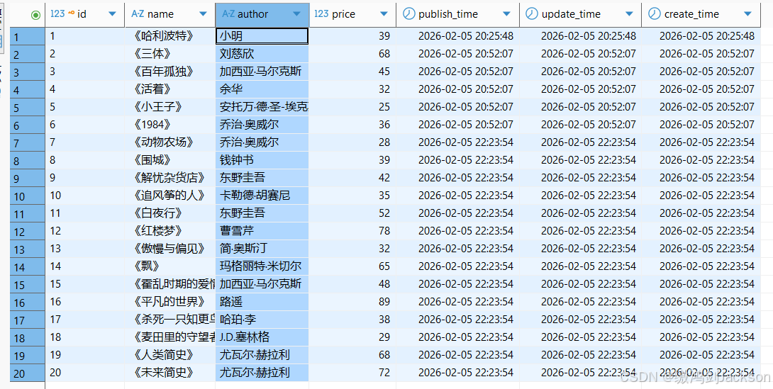 准备:我们提前往Book表插入数据,凑够20行。