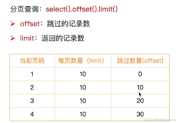 # 1.先根据用户输入的页码(pageNum)、每页的行数(pageSize),计算出要跳过多少行