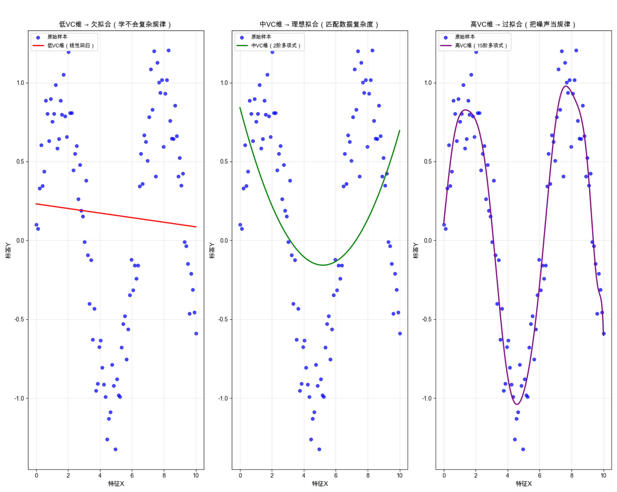 综合实战案例:不同 VC 维模型效果对比(可视化欠拟合 / 过拟合 / 理想状态)