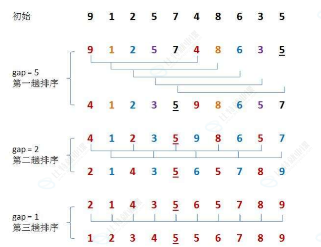 分组和排序的⼯作。当到达=1时,所有记录在统⼀组内排好序。