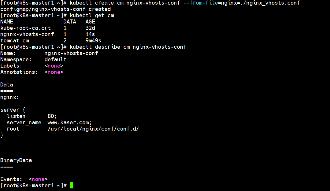 [root@k8s-master1 ~]# kubectl create cm nginx-vhosts-conf --from-file=nginx=./nginx_vhosts.conf