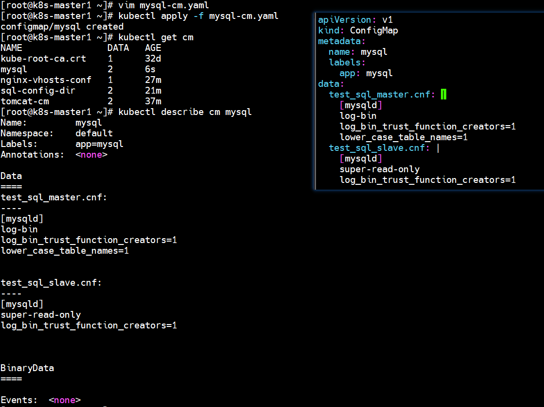 [root@k8s-master1 ~]# kubectl apply -f mysql-cm.yaml