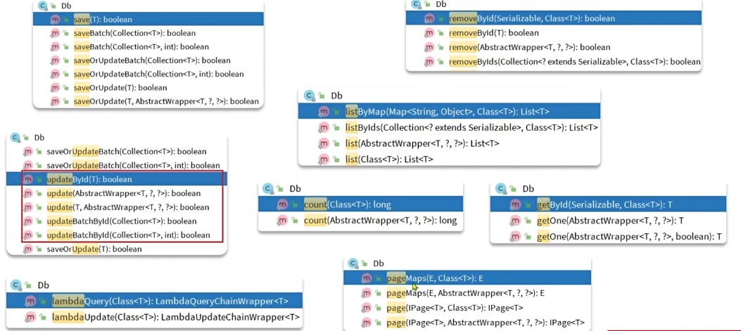 但是静态工具,由于静态方法是无法读取到泛型的,这就导致无法知道实体类。所以方法都需要传递一个额外的参数,必须传递class字节码。只有save和update不需要。