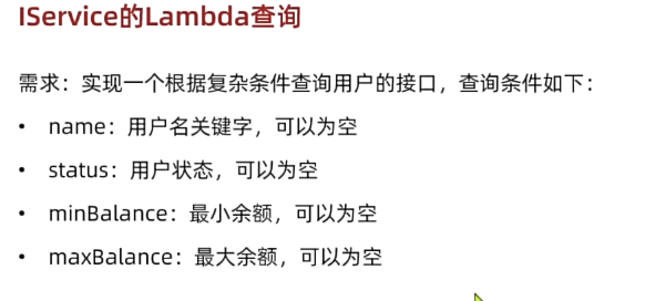 List<User> users = userService.queryusers(userQuery.getName(),userQuery.getStatus(),userQuery.getMinBalance(),userQuery.getMaxBalance());
