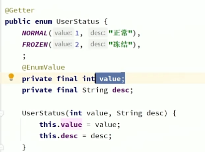 2.在枚举类使用注解标记:@EnumValue 来通知哪个是对应的