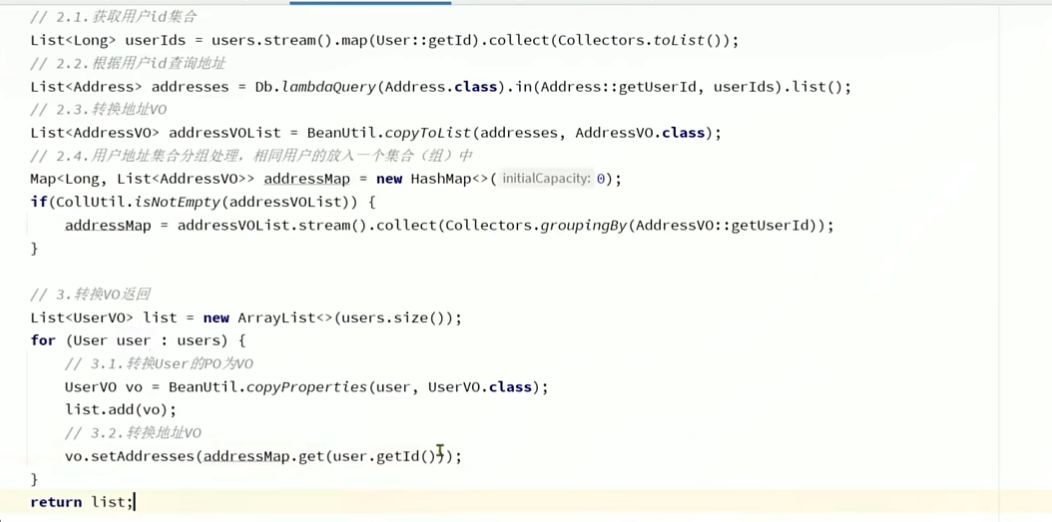 需要注意的是po转换成vo,而将address转成vo则是因为uservo中是addressvo的集合。