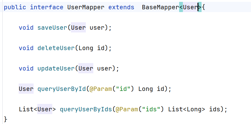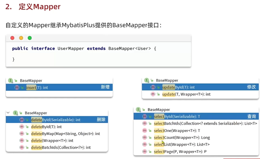 直接调用了父basemapper里面的方法,增删改查并不需要自己写。