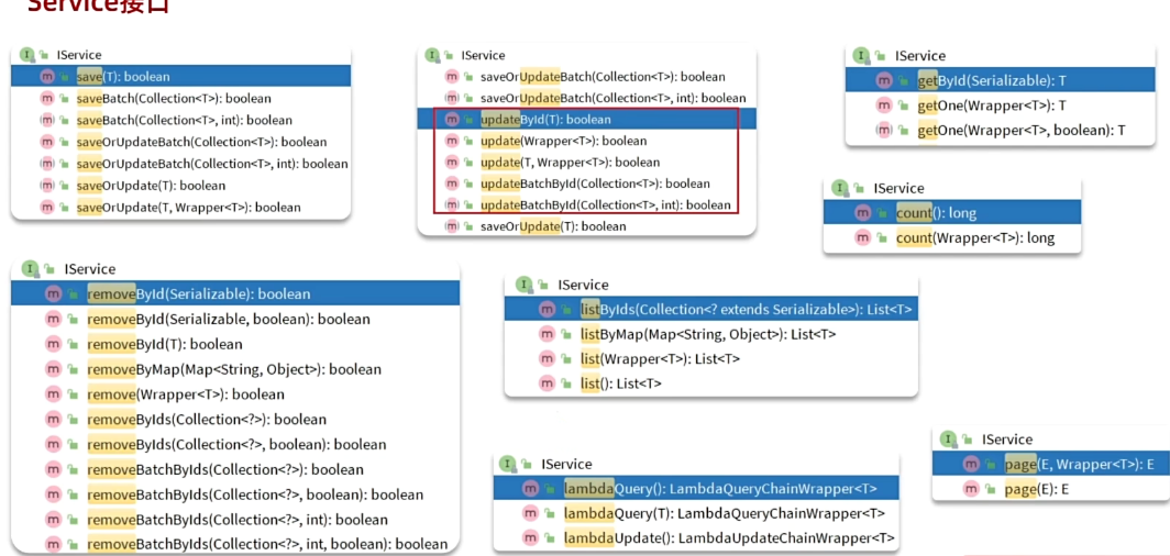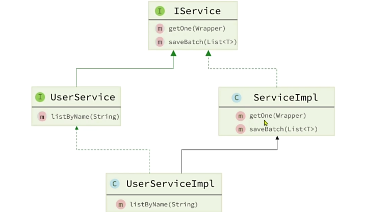 iservice是非静态的,所以我们需要自定义接口并且继承,指定泛型类型为实体类类型。