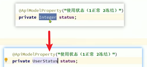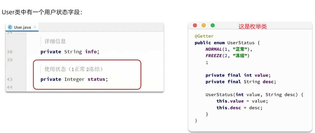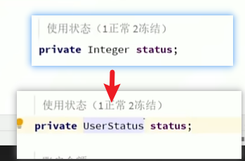 这样虽然方便,但是有一个问题:在数据库中status还是int类型,而po为枚举类型,假如做操作,在status写什么呢,不可能写nomarl。而我们在进行查询的时候,会查询到status为数字,转成po用的却是枚举类型,数字怎么进行转换?