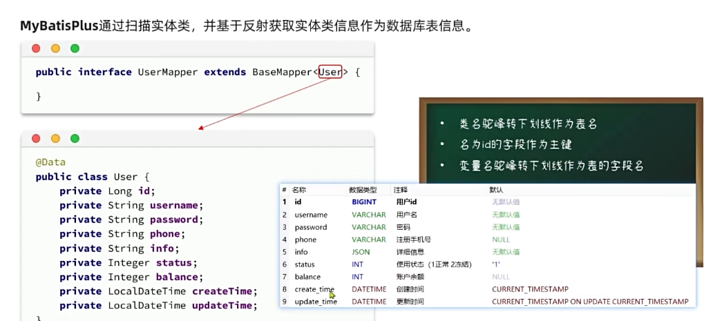 mp通过扫描实体类并基于反射获取实体类信息作为数据库表信息。