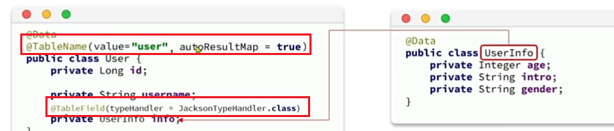 普遍字段信息有一个需要注意的点,即字段名中第一个为is,类型为布尔值。如isMarried,他是布尔值,这种字段会将is去掉在做为变量名,所以一定需要加上注解。