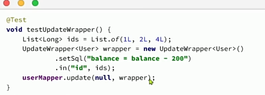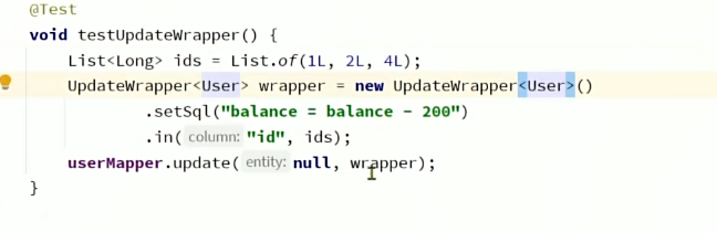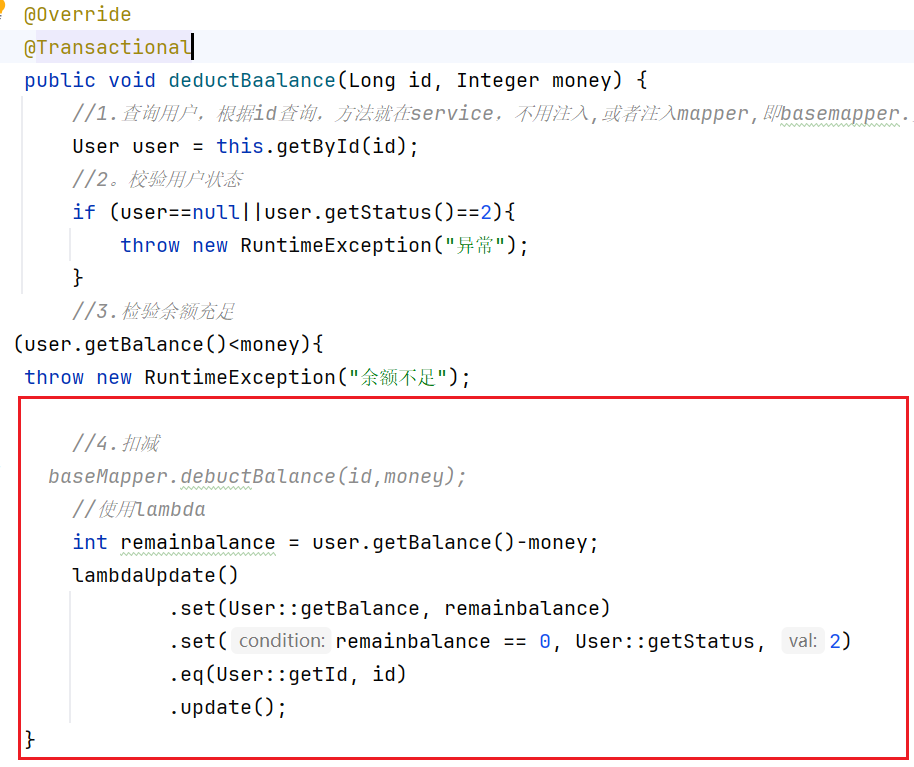 @Update("UPDATE user SET balance = balance-#{money} where id = #{id}")