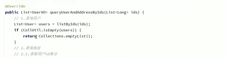 需要注意的是,即使我们查到的是ids,但是最好根据用户id查询用户地址之前先再获取id集合,因为传入的ids中可能不存在某个id