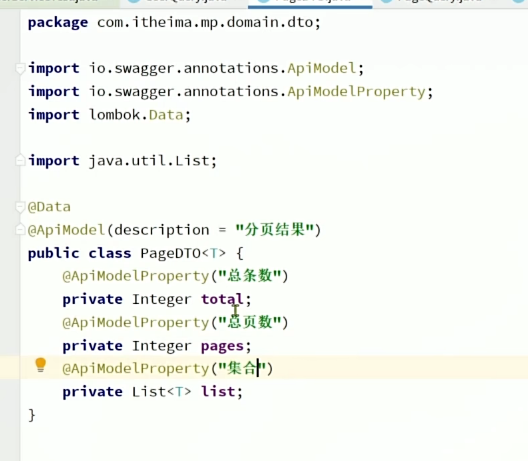 然后就是返回值结果,一共有三个属性需求,并且定义为dto,因为其他组件也可能使用:
