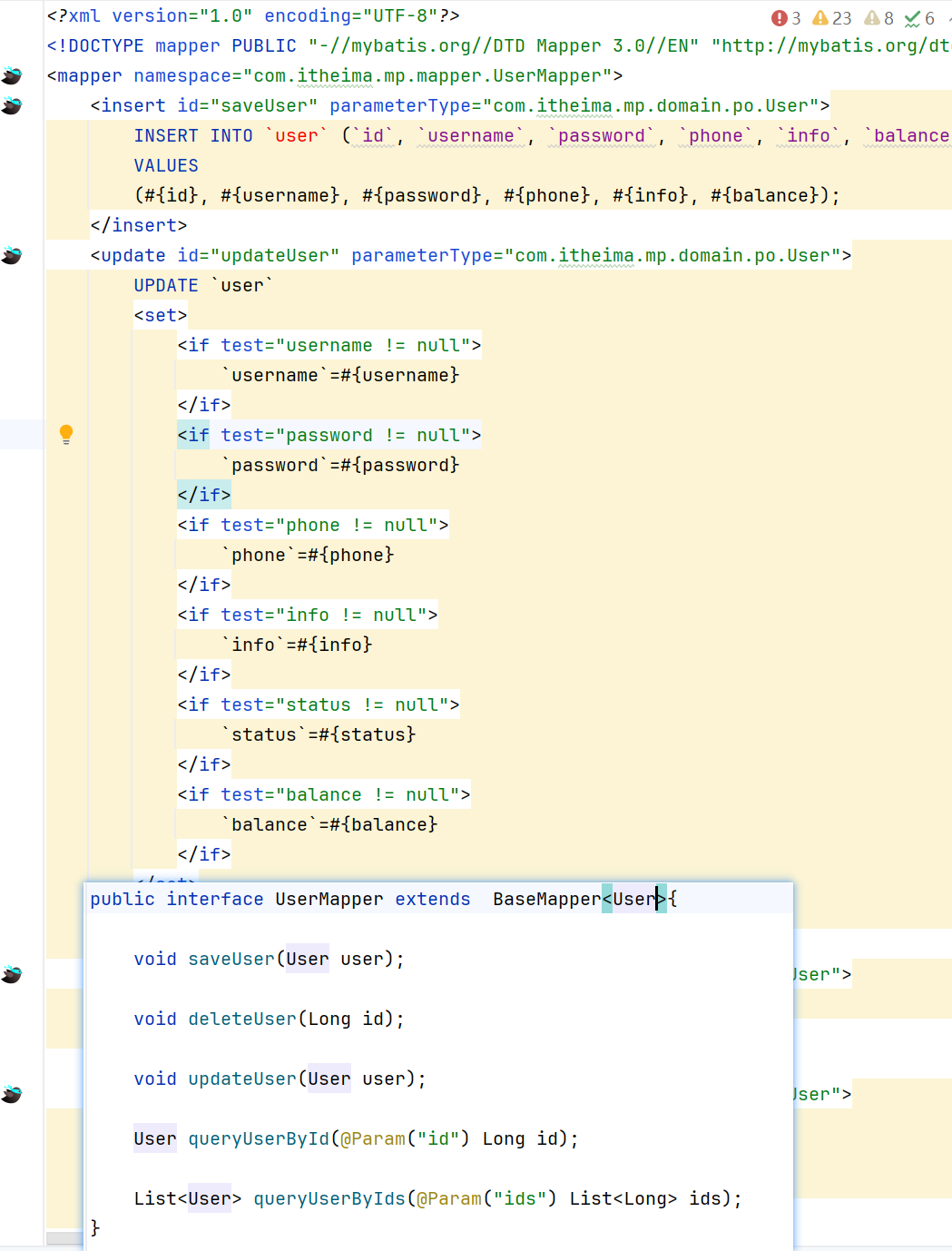以上是手写的sql语句,如果使用mp: