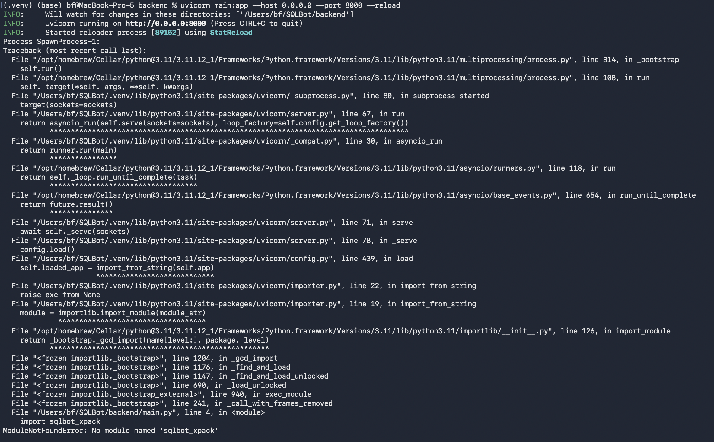 uvicorn main:app --host 0.0.0.0 --port 8000 --reload