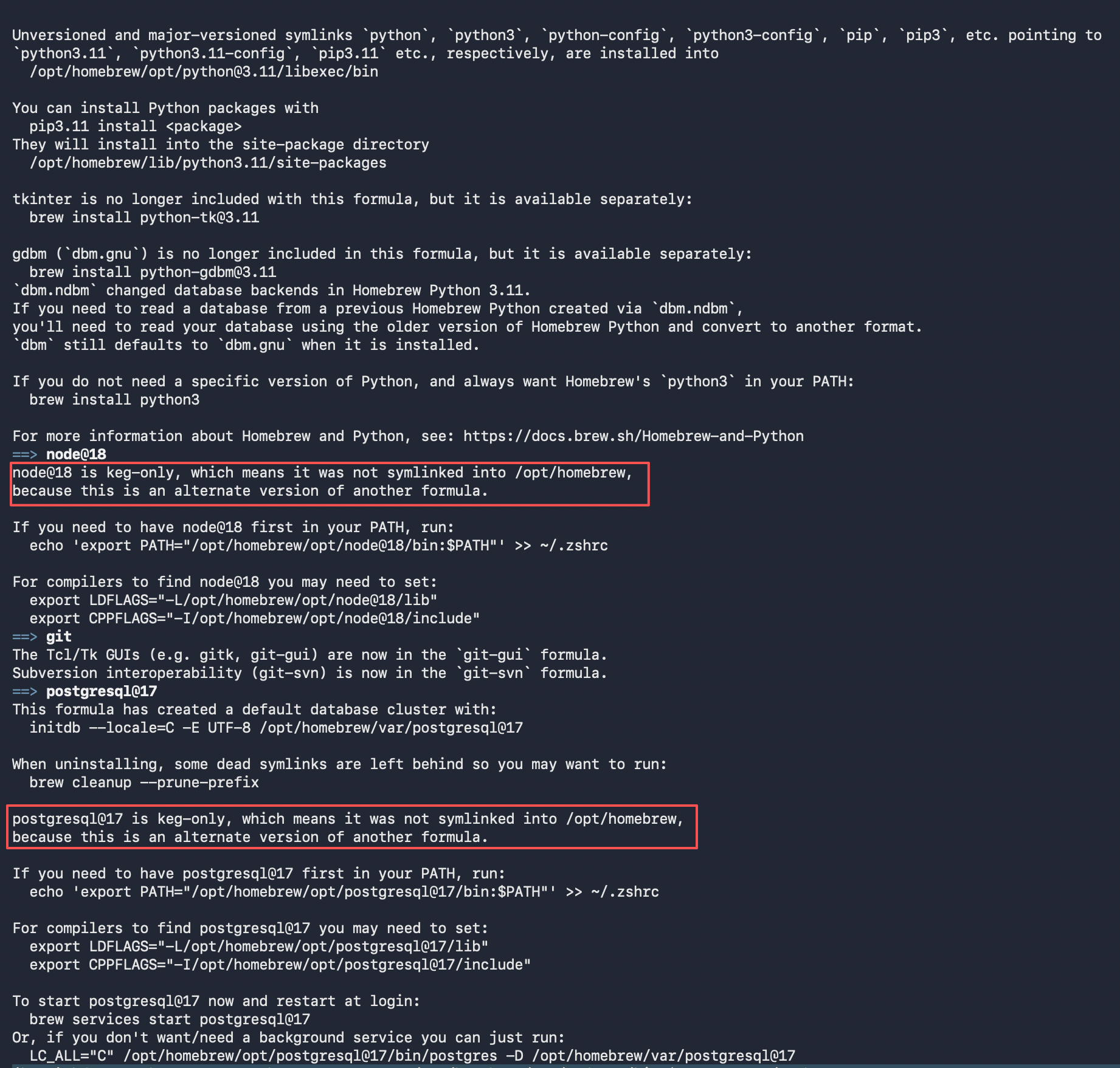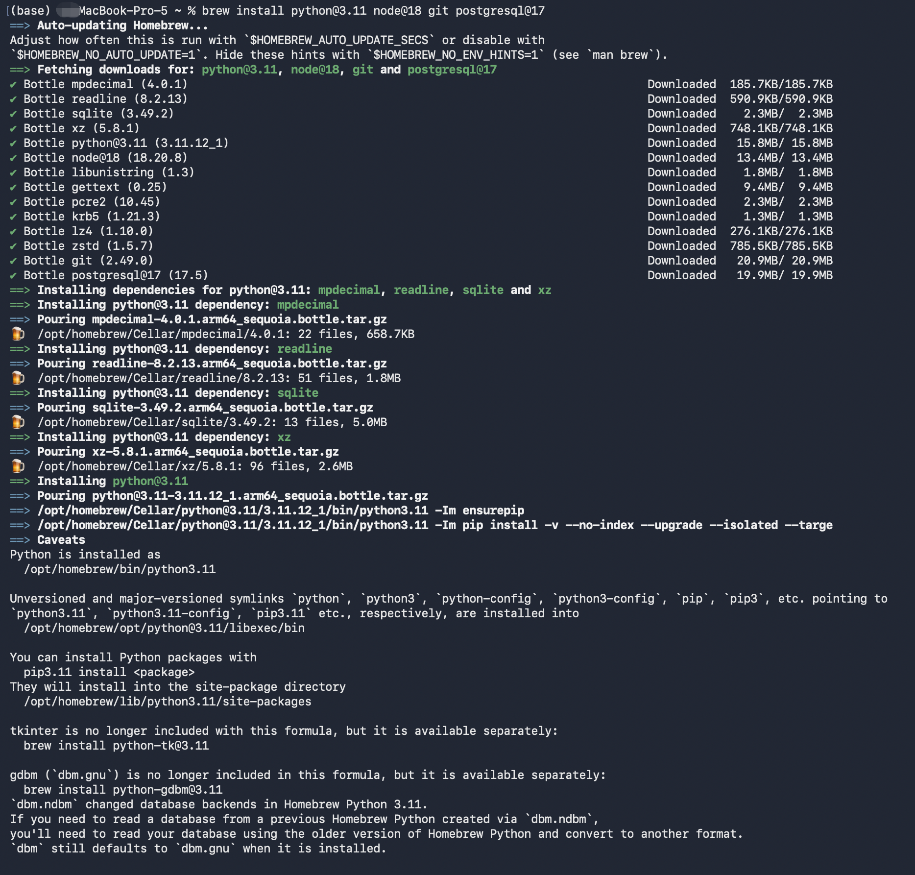 brew install python@3.11 node@18 git postgresql@17