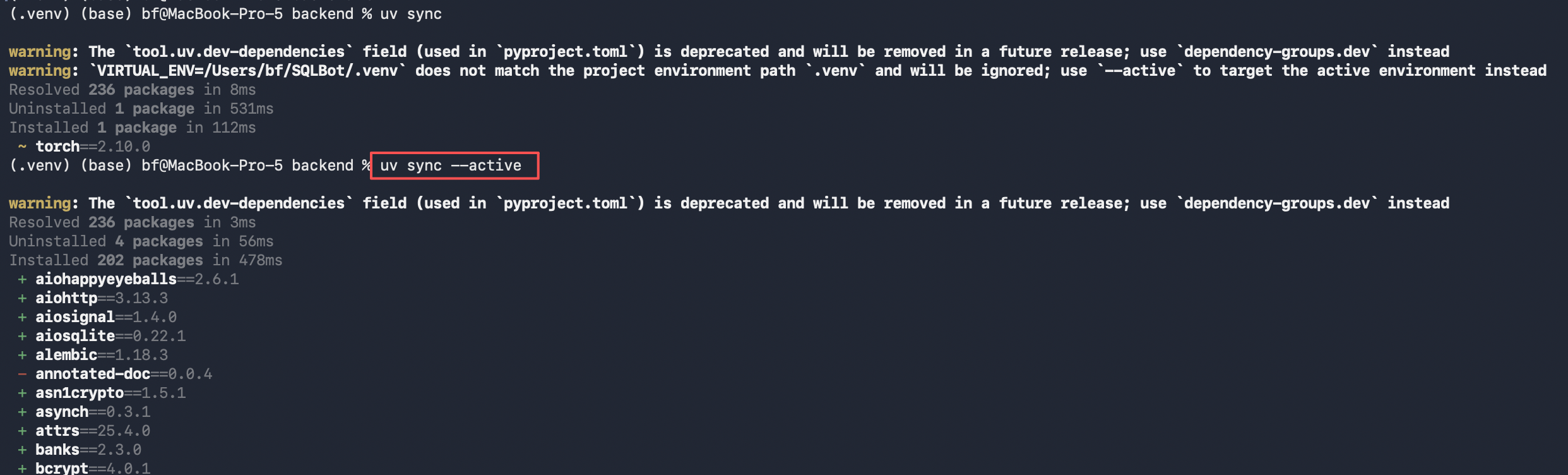 uv sync --active