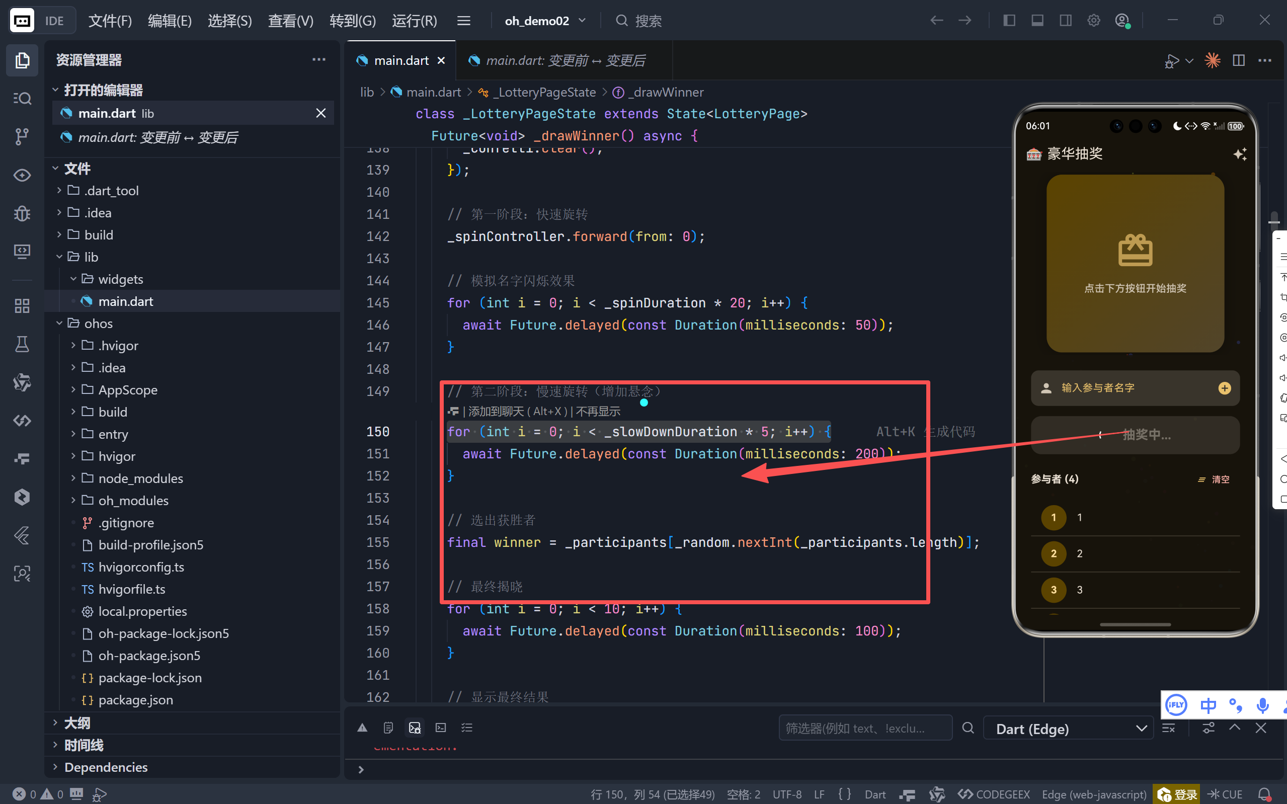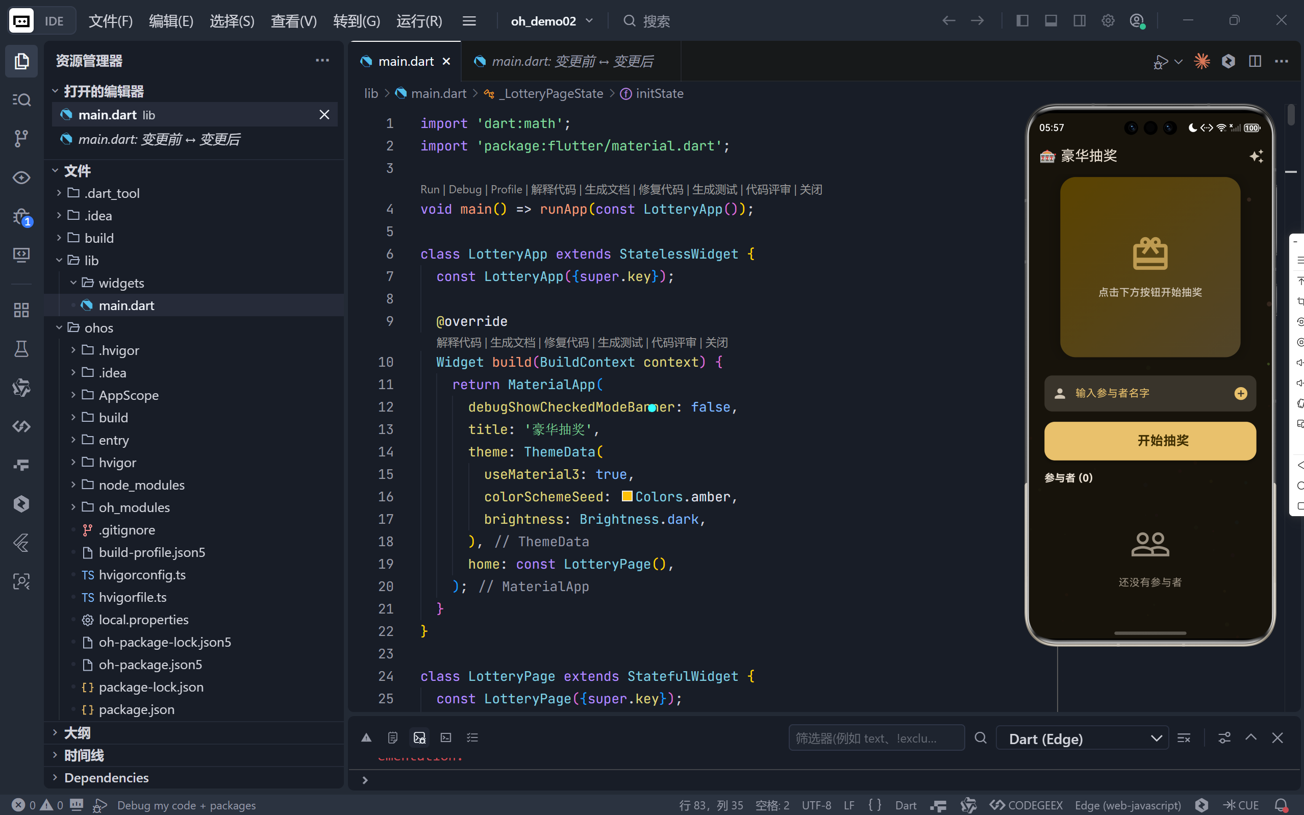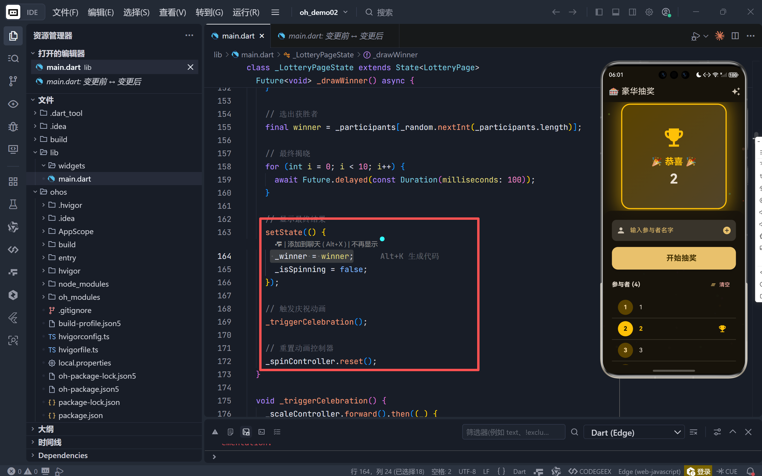 在数字娱乐场景中,抽奖系统 始终是调动用户情绪、增强参与感的利器。而一个真正令人印象深刻的抽奖应用,不仅需要逻辑严谨的随机算法,更依赖于沉浸式的视觉反馈 与富有张力的动效设计 。本文将深度解析一段完整的 Flutter 抽奖应用代码,带你从零构建一个集 动态粒子背景、弹性缩放动画、滑动删除交互、彩带庆祝特效 于一体的"豪华抽奖"体验。