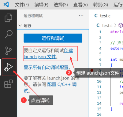 首先点击调试,创建launch.json文件
