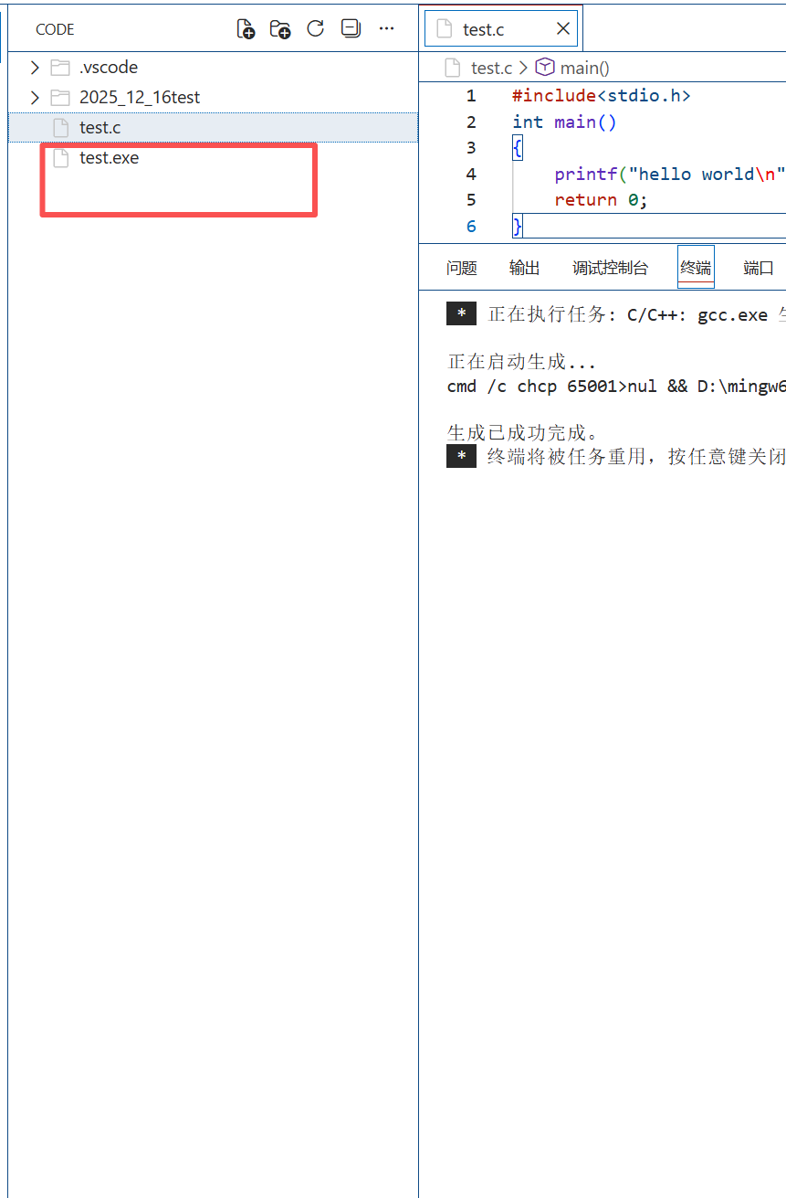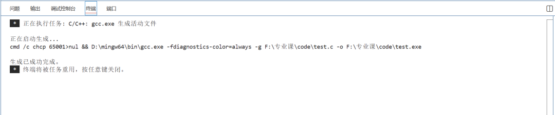 就可以运行代码了,要在命令行里继续补全路径,.\test.exe