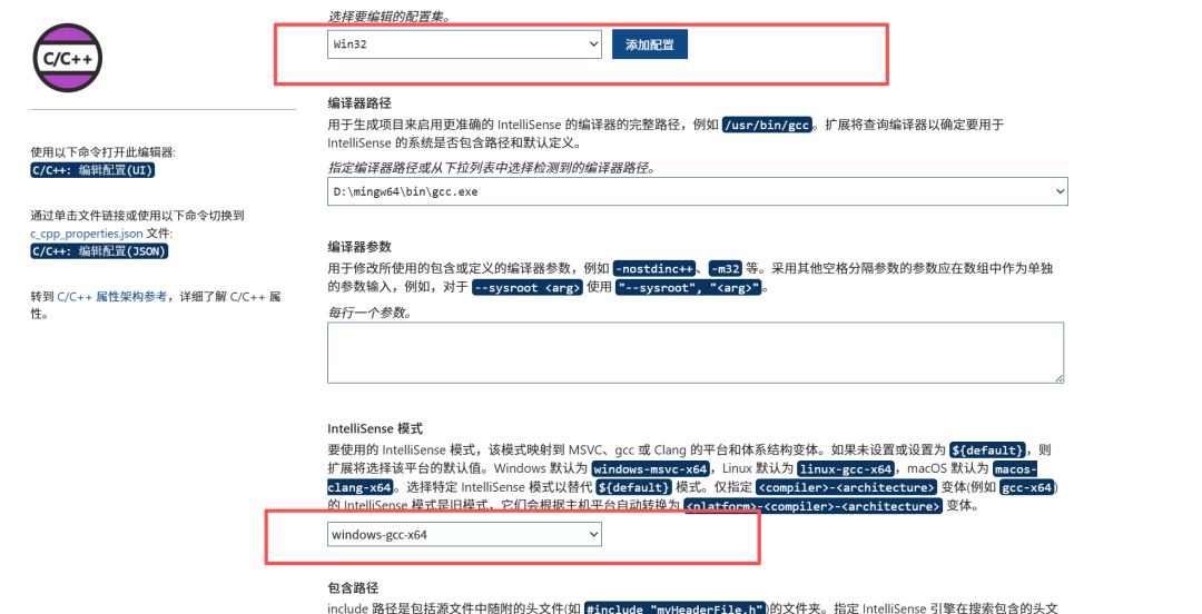 配置【IntelliSense模式】为gcc-x64(legacy)