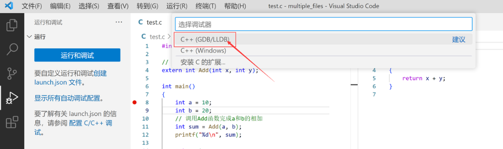 如果没有【C++(GDB/LLDB)】,需要先在扩展里面安装CodeLLDB