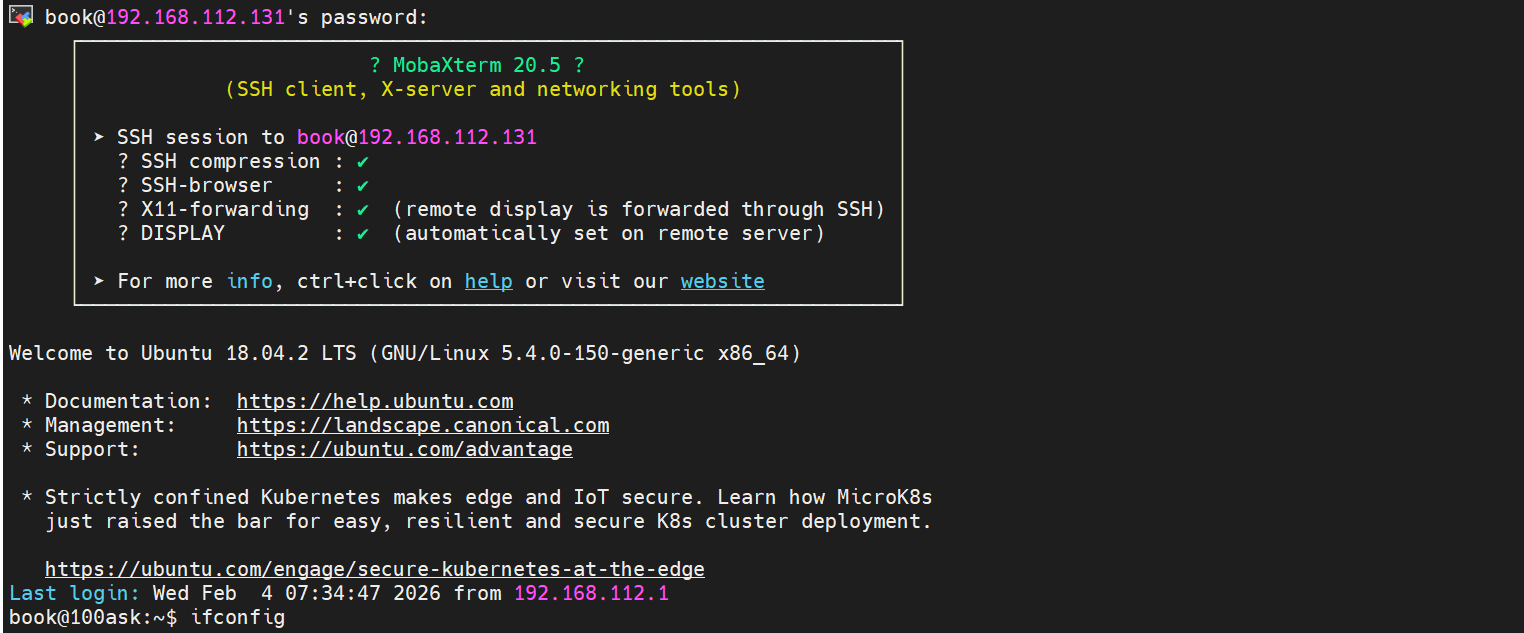 book@100ask:~$ ifconfig