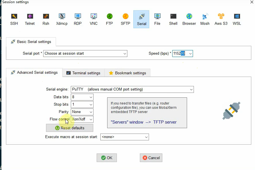 然后这样再Mobexterm上面设置串口,然后点击OK即可,记得要把你的板子开机,然后开机完之后,就会然你输入你板子对应的密码就可以进去操作