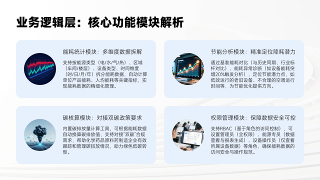 权限管理模块采用基于角色的访问控制,设置不同角色权限,确保能耗数据访问安全与操作规范,保障企业数据安全。