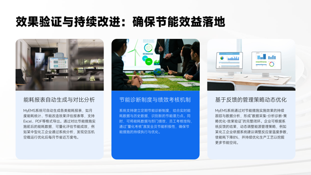最后,效果验证与持续改进通过自动生成能耗报表对比数据,量化评估成效,结合节能诊断与绩效考核机制,持续优化管理策略,形成完整闭环。