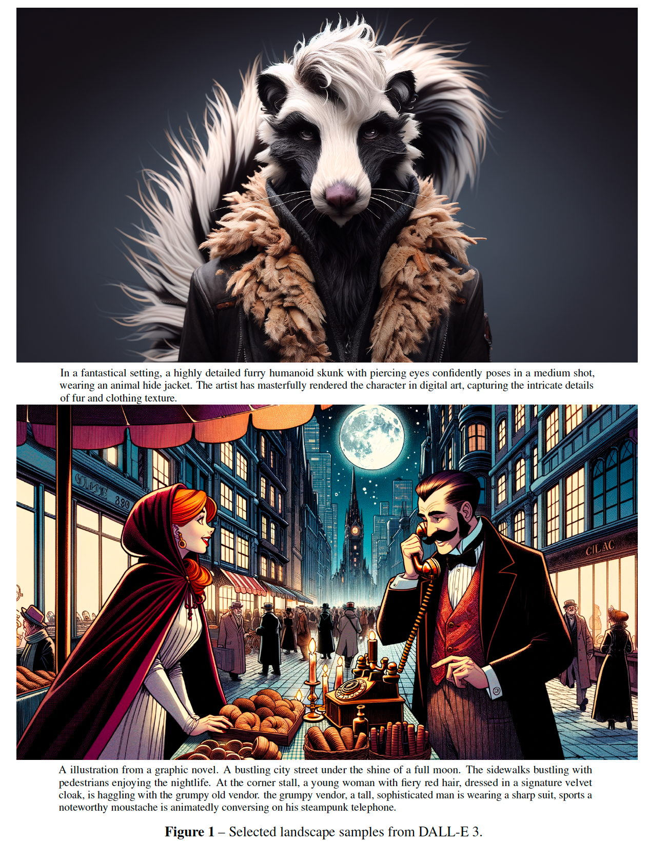 本文重点评估DALL-E 3由于训练描述文本改进而带来的改进提示跟随能力。我们还在第3节评估了在原始描述文本与生成描述文本上训练的文本到图像模型,在第4节评估了DALL-E 3,并在第5节讨论了局限性和风险。
