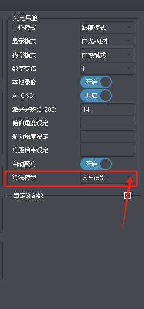 算法模型修改后设备会自动重启(部分型号可立即生效不重启),并生效新的模型,可通过参数设置页面读取到的模型类别或者通过打开 AI-OSD 查看当前模型。