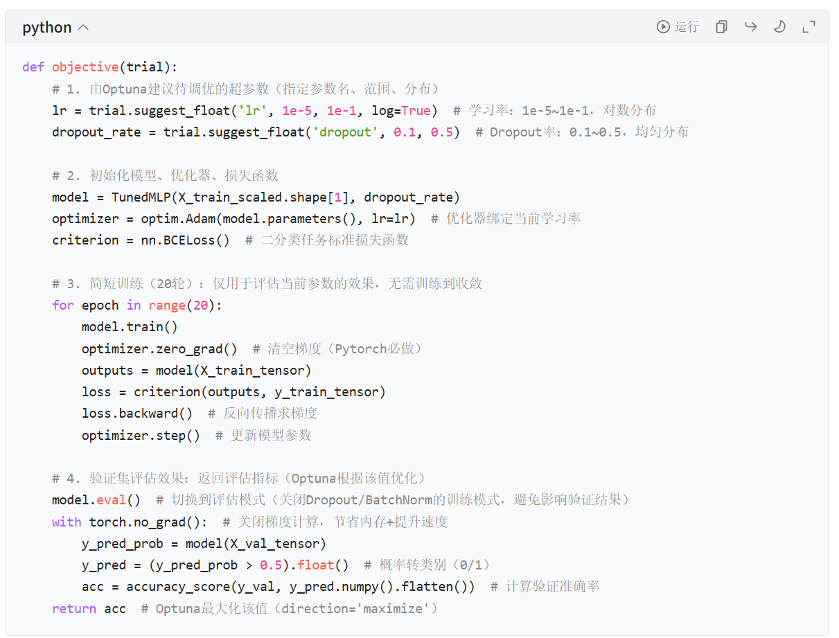 2. 定义 Optuna 目标函数(objective)------ 调优的核心
