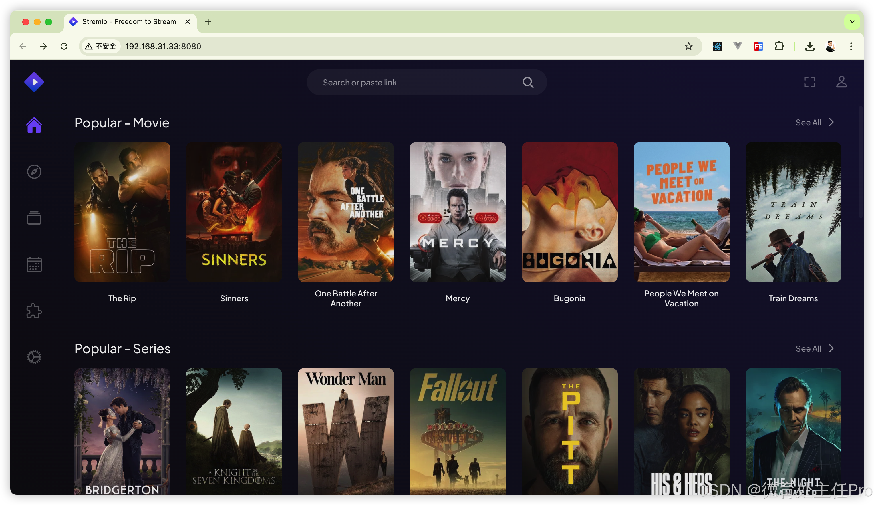 等镜像下载成功后,在浏览器输入 NAS的IP:8080 就能访问 Stremio 了。